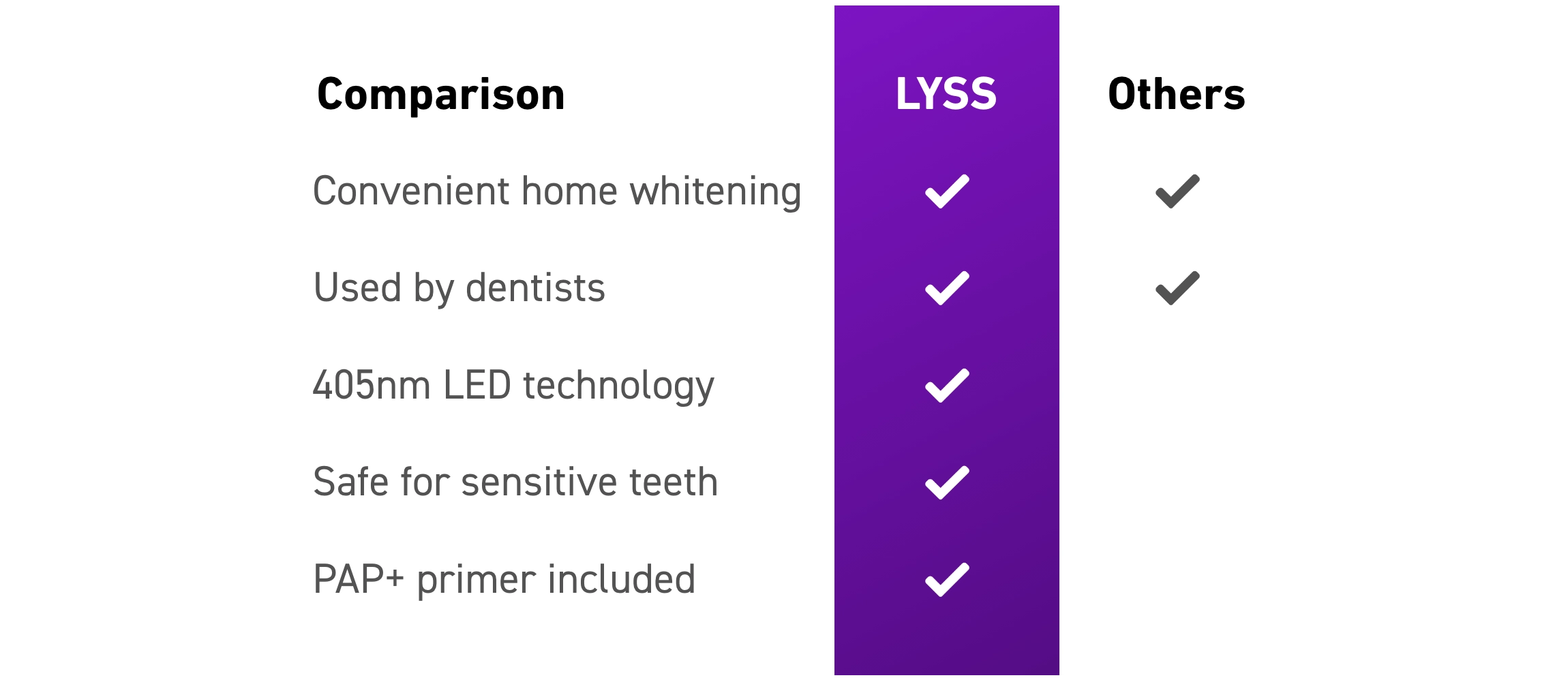 We have completely redesigned our teeth whitening kit and are the first in the world to offer professional whitening from the comfort of your own home. The LED light shines with 32 diodes versus 5 diodes in competing devices while operating on a shorter more efficient wavelength. The LED light is used to activate the PAP+ formula and multiply its effectiveness.